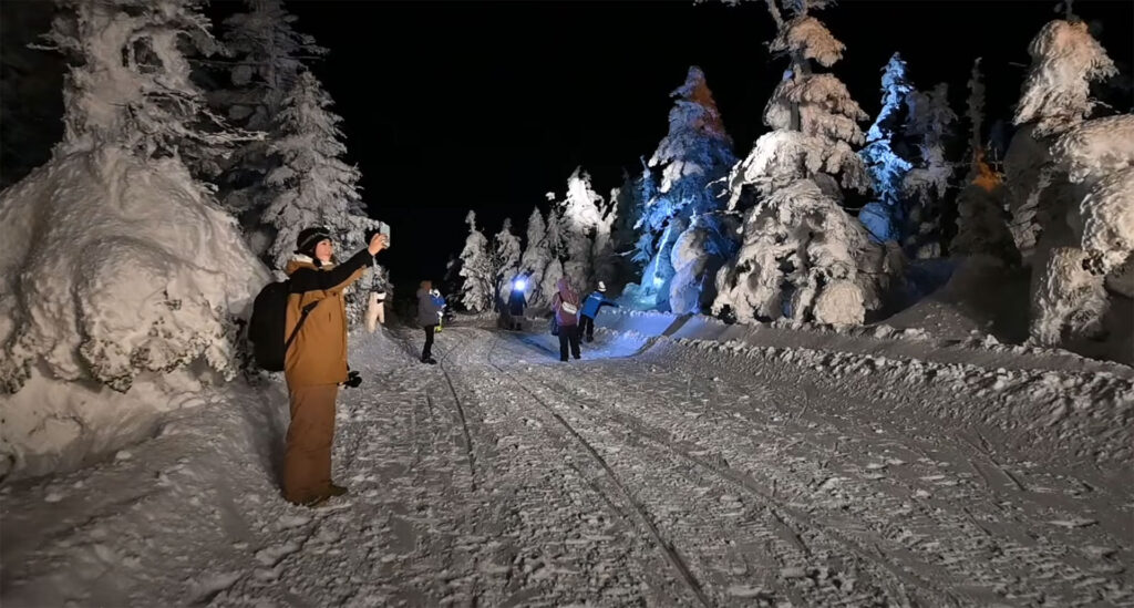 標高2,000mを超える横手山の山頂付近では、厳しい自然条件が生み出す神秘的な光景「スノーモンスター(樹氷)」 が姿を現します。この幻想的な樹氷群を安全に、そして間近で体験できる特別な冬のツアーです。